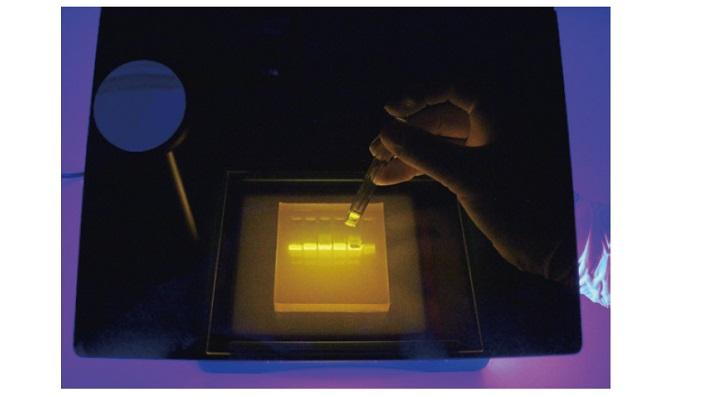 TGreen Monitor plus 蓝光电泳监测仪套装是基于 TGreen Monitor 的一款升级产品。套装内提供一台六一生物科技有限公司型号为 DYCP-31DN 的电泳槽,蓝光电泳监测仪的尺寸与电泳槽完全匹配;套装内还提供一件亚克力材质的切胶架(OSE470M-A001),切胶架直接放置于蓝光电泳监测仪上,方便凝胶回收的操作。使用滤光片,规避了使用传统滤光眼镜的人体接触污染风险。滤光片可 360 度自由固定,使用更方便。 采用 LED 蓝光光源,可用于多种安全染料/EB 染料染色的核酸的观察。 兼容的荧光染料:EB、 GeneGreen、GeneRed、GelGreen、GelRed、 Goldview 等。搭配荧光染料(如 GeneGreen),分辨率可达 2 ng。